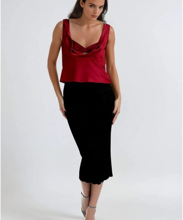 Romance Charm Satin Top – Burgundy