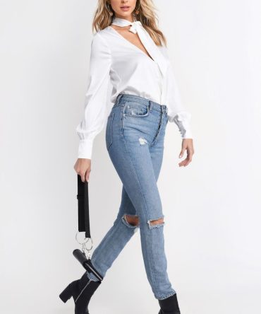 Reagan Neck Tie Blouse – Ivory