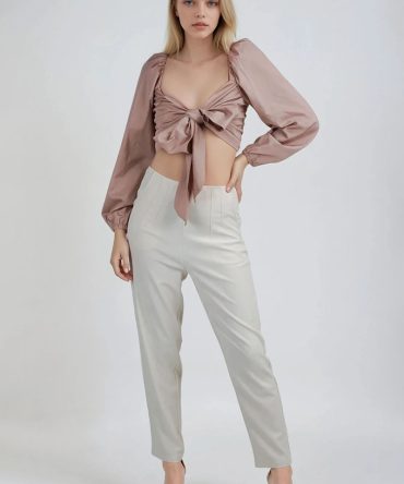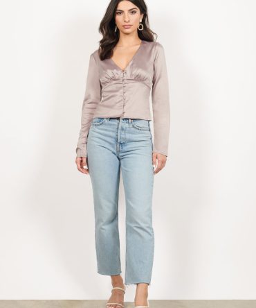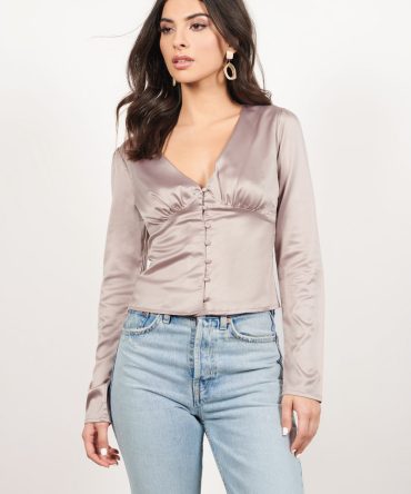 Believe Me Satin Blouse – Taupe