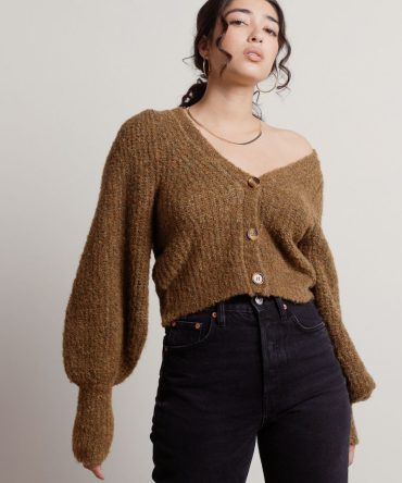 Caffeine Addict Balloon Sleeve Cardigan – Olive