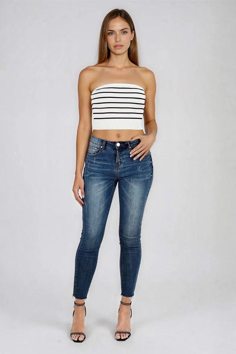 Playful polished energy defines the Act Cute Strapless Stripe Crop Top in Ivory, made to hug you just right with a stretchy ribbed knit that stays comfy and secure. The striped texture adds instant style while the strapless neckline keeps it flirty and clean. Easy to dress up or down, it pairs perfectly with denim, skirts, or tailored pants. Ideal for brunch dates, summer parties, vacations, and casual nights out when you want to look cute with zero effort.