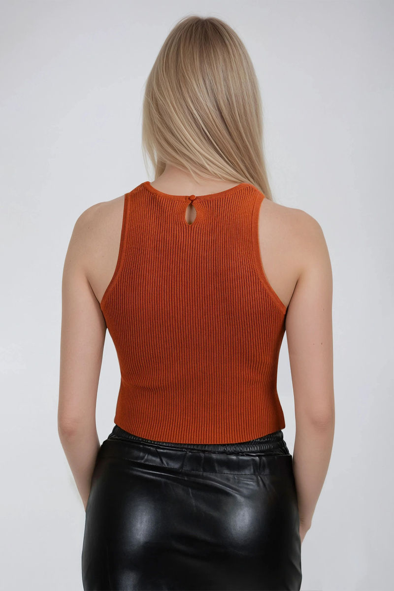Steal the spotlight in the All Eyes Here Cutout Tank Top in Caramel. Crafted from luxe rib knit, this crop top features a sleek round neckline with a daring front cutout and edgy pin detail that turns basics into bold statements. Its body-hugging fit flatters every curve, making it perfect for pairing with leather minis, denim, or tailored pants. Flirty yet fierce, this top guarantees all eyes stay locked on you.
